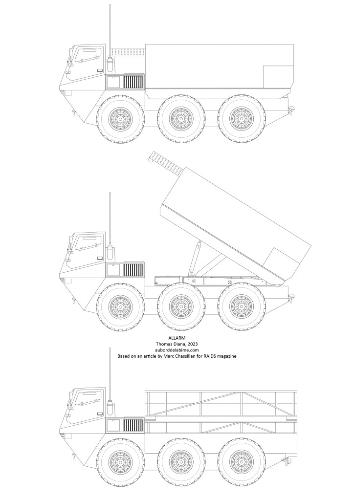 D’un point de vue uchronique, l’ALLARM était de ce fait un HIMARS 20 ans avant l’heure. Deux ALLARM auraient pu prendre place dans un A400M. Le système aurait pu être mis à jour pour utiliser le même châssis Renault Sherpa 5 que le CAESAR.