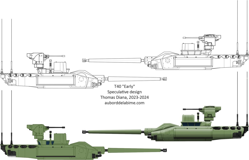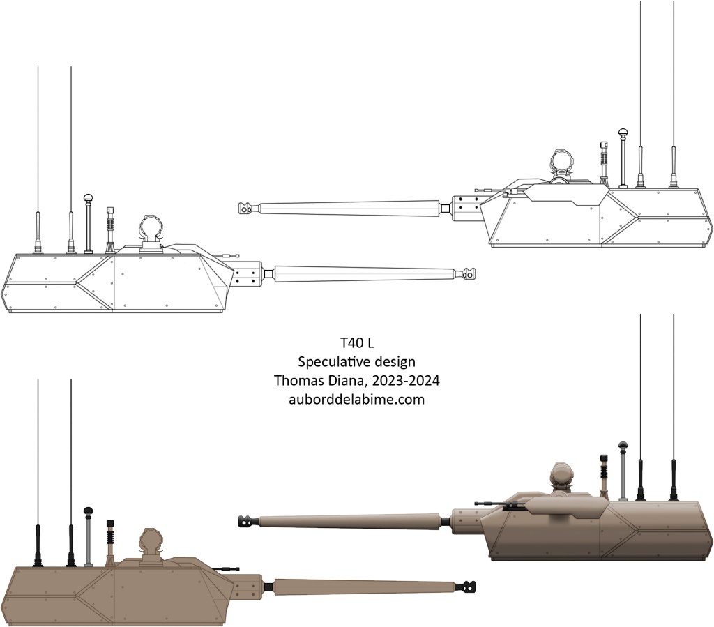 Une extrapolation personnelle à mi-chemin entre la T40 envisagée pour le « Leclerc T40 » et le premier démonstrateur testé sur un « AMX-10RCR T40 ». La tourelle est une « 2 hommes » qui abrite le chef de char et le tireur. Cette version intègre :
