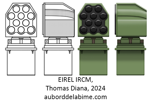 Airbus Defence (EADS à l’époque) a conçu un EIREL NG faisant partie de la suite Multifunctional Self protection System (MUSS, Multifunktionales Selbstschutz-System) qui est notamment utilisée sur l’IFV Puma. Côté français, GIAT puis Nexter ont continué à développer ce genre de capacité avec les différentes propositions et itérations du KBCM (Kit Basique de Contre-Mesures).
