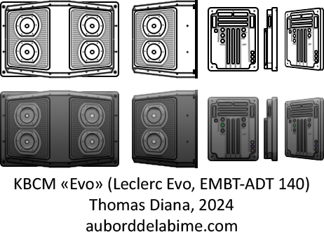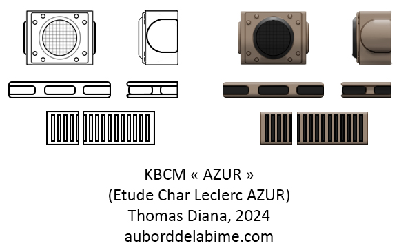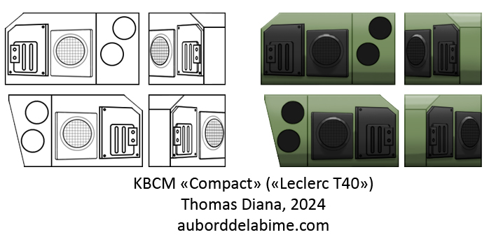 Il s’agit d’une version aperçue sur certaines études et maquettes de la tourelle T40 pour le char « Leclerc T40 ». L’ensemble des composants du KBCM est regroupé dans deux blocs asymétriques (ne me demandez pas pourquoi) fixés de part et d’autre du canon sur la face avant de la tourelle.